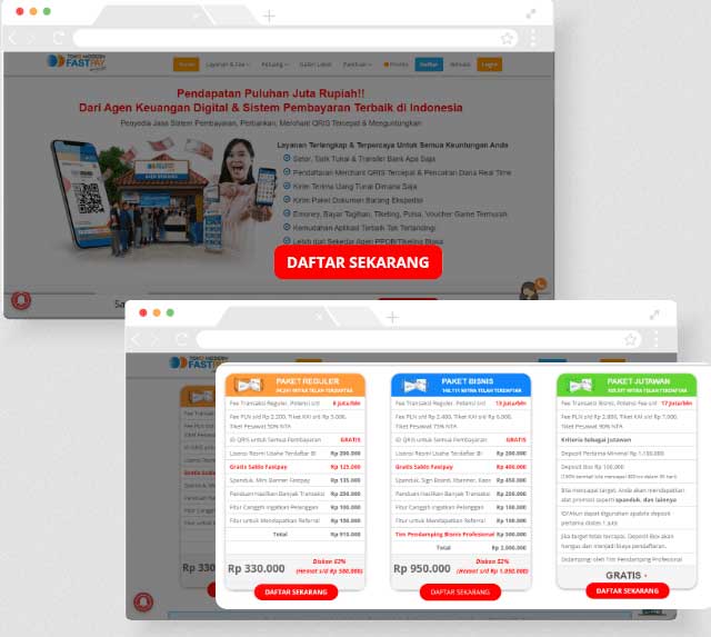 Bisnis PPOB Gerai Fastpay merupakan solusi bisnis dan peluang usaha bagi masyarakat Indonesia yang ingin mempunyai usaha pembayaran PPOB terlengkap; bisnis pulsa murah; bisnis tiket travel pesawat, kereta api, , bus AKAP, kapal PELNI; bisnis top up Gopay, DANA, OVO, LinkAja, Maxim, SpeedCash, dll; bisnis ekspedisi; bisnis voucher game murah dan lengkap; bisnis transfer uang, dll.