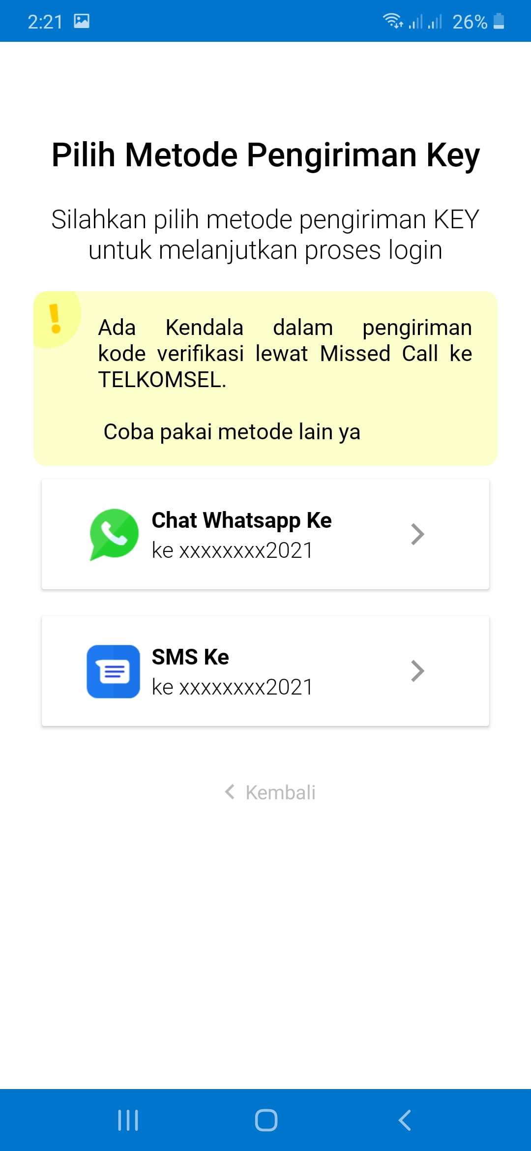 - Kode tersebut akan dikirimkan sesuai metode yang kamu pilih