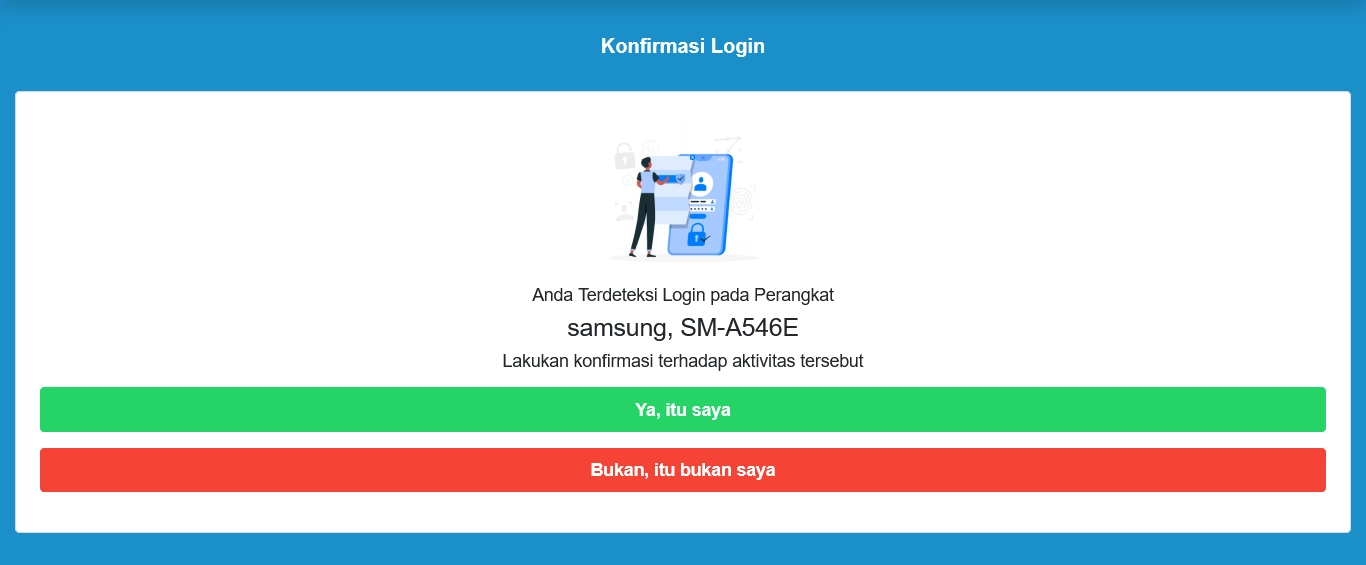7. Selanjutnya setelah anda mengklik link yang telah di kirim. apa bila anda silakan konfir anda, apa bila bukan anda, silakan konfirirmasi, bukan itu bukan saya. Contoh kurang lebih pada gambar di bawah